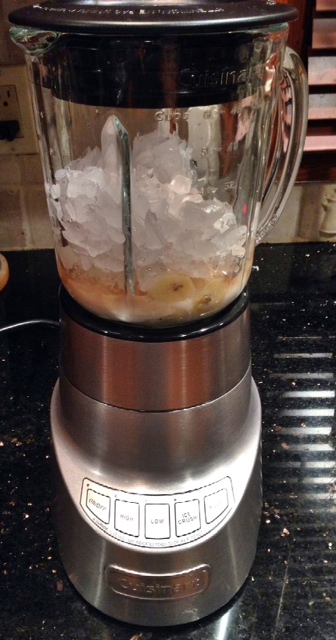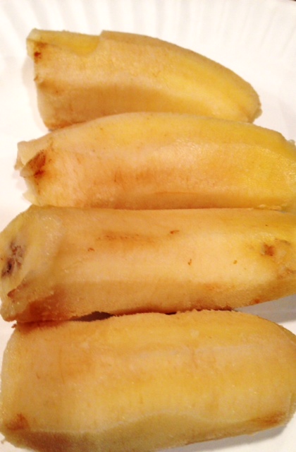 So when I froze these two bananas, I froze them with the peel on (NOT PRETTY!) I think that was a bad move because I had to cut the peel off with a knife. Next time I will freeze the bananas pre-peeled.