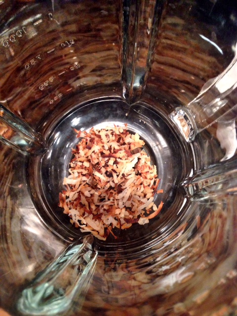 Once the coconut was toasted, I threw it in the blender leaving a little extra out to save for garnishes.