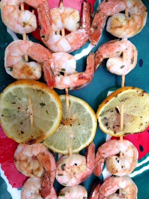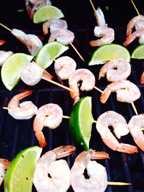 Once we got to the BBQ we stored the shrimp in the fridge for another hour or so and then it was grill time! We stuck the skewers on a hot grill for 1 minute on each side. These babies cook fast so watch them carefully!