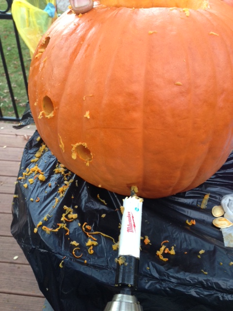 Once the inside was perfectly scooped out and clean, I started drilling holes in my pumpkins.