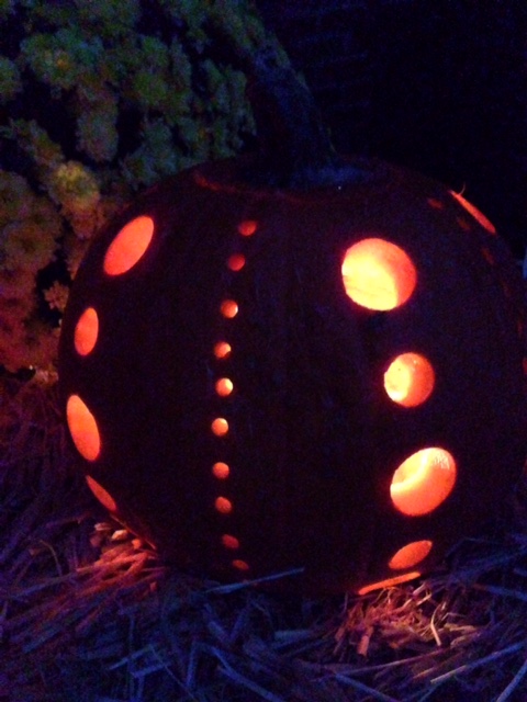 Even though Halloween is t-minus 3 days away, it’s never too late to “carve” a pumpkin. I had seen this idea floating around online for awhile and decided that this year I was going to test it out. Turns out, making pumpkins covered in holes is the easiest thing, and it looks pretty cool too!